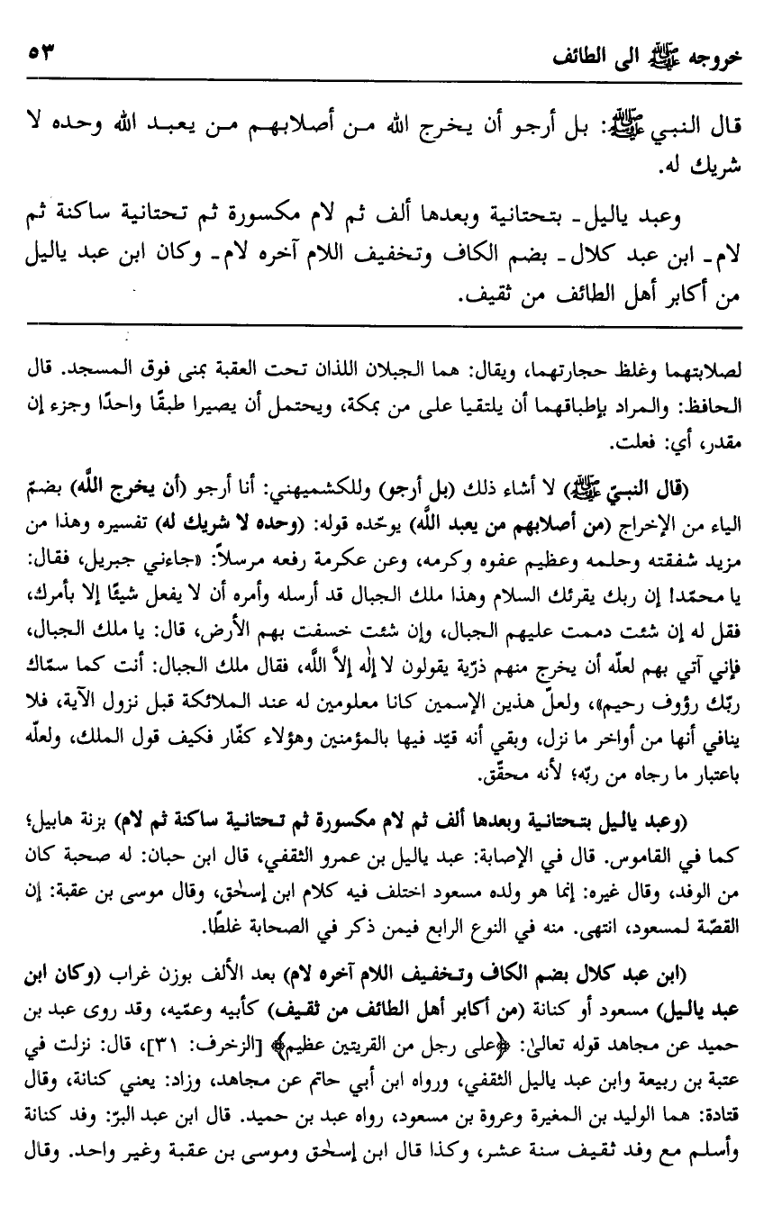وعبد يا ليل؛ بتحتانية وبعدها ألف ثم لام مكسورة ثم تحتانية ساكنة ثم لام -ابن عبد كلال- بضم الكاف وتخفيف اللام آخره لام، وكان ابن عبد يا ليل من أكابر أهل الطائف من ثقيف.