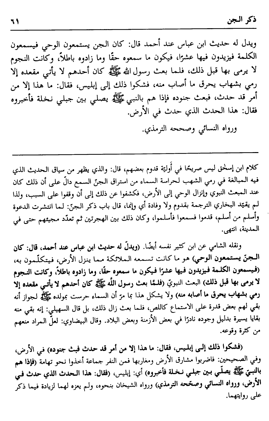 كلام ابن إسحاق ليس صريحا في أولية قدوم بعضهم، قال: والذي يظهر من سياق الحديث الذي فيه المبالغة في رمي الشهب لحراسة السماء من استراق الجن السمع دال على أن ذلك عند المبعث النبوي وإنزال الوحي إلى الأرض، فكشفوا عن ذلك إلى أن وقفوا على السبب، ولذا لم يقيد البخاري الترجمة بقدوم ولا وفادة أي وإنما، قال باب ذكر الجن: لما انتشرت الدعوة وأسلم من أسلم، قدموا فسمعوا فأسلموا، وكان ذلك بين الهجرتين ثم تعدد مجيئهم حتى في المدينة، انتهى.