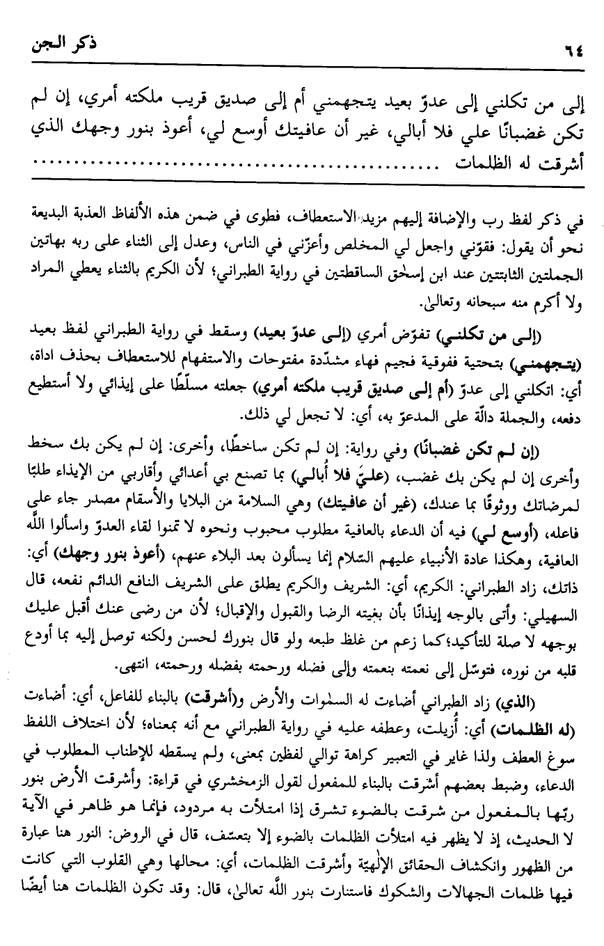 إلى من تكلني إلى عدو بعيد يتجهمني أم إلى صديق قريب ملكته أمري، إن لم تكن غضبانا علي فلا أبالي، غير أن عافيتك أوسع لي، أعوذ بنور وجهك الذي أشرقت له الظلمات............
