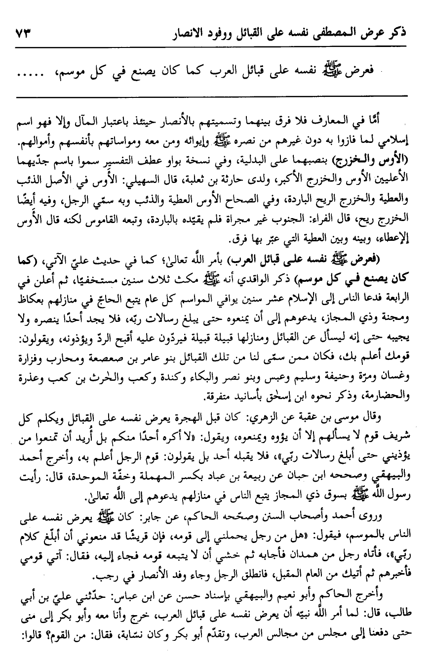 فعرض -صلى الله عليه وسلم- نفسه على قبائل العرب كما كان يصنع في كل موسم،..........