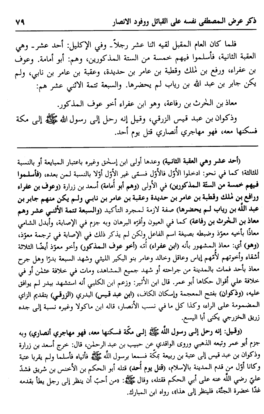 فلما كان العام المقبل لقيه اثنا عشر رجلا -وفي الإكليل: أحد عشر- وهي العقبة الثانية، فأسلموا فيهم خمسة من الستة المذكورين، وهم: أبو أمامة. وعوف بن عفراء، ورفع بن مالك وقطبة بن عامر بن حديدة، وعقبة بن عامر بن نابي، ولم يكن جابر بن عبد الله بن رياب لم يحضرها. والسبعة تتمة الاثني عشر هم: