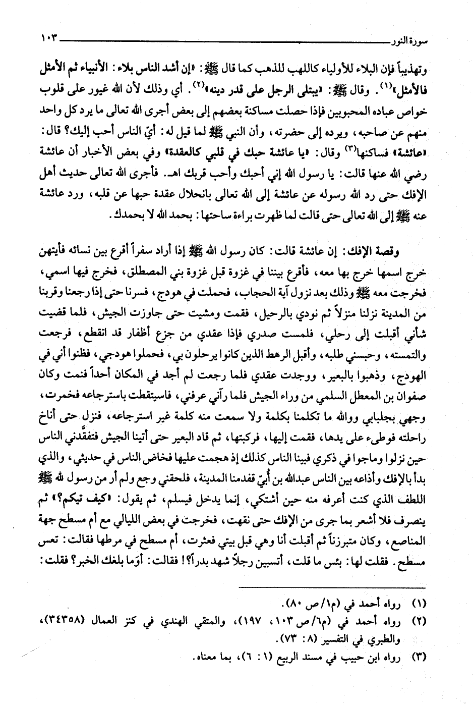 (2) رواه أحمد في (م 6/ ص 103، 197) ، والمتقي الهندي في كنز العمال (34358) ، والطبري في التفسير (8: 73) .