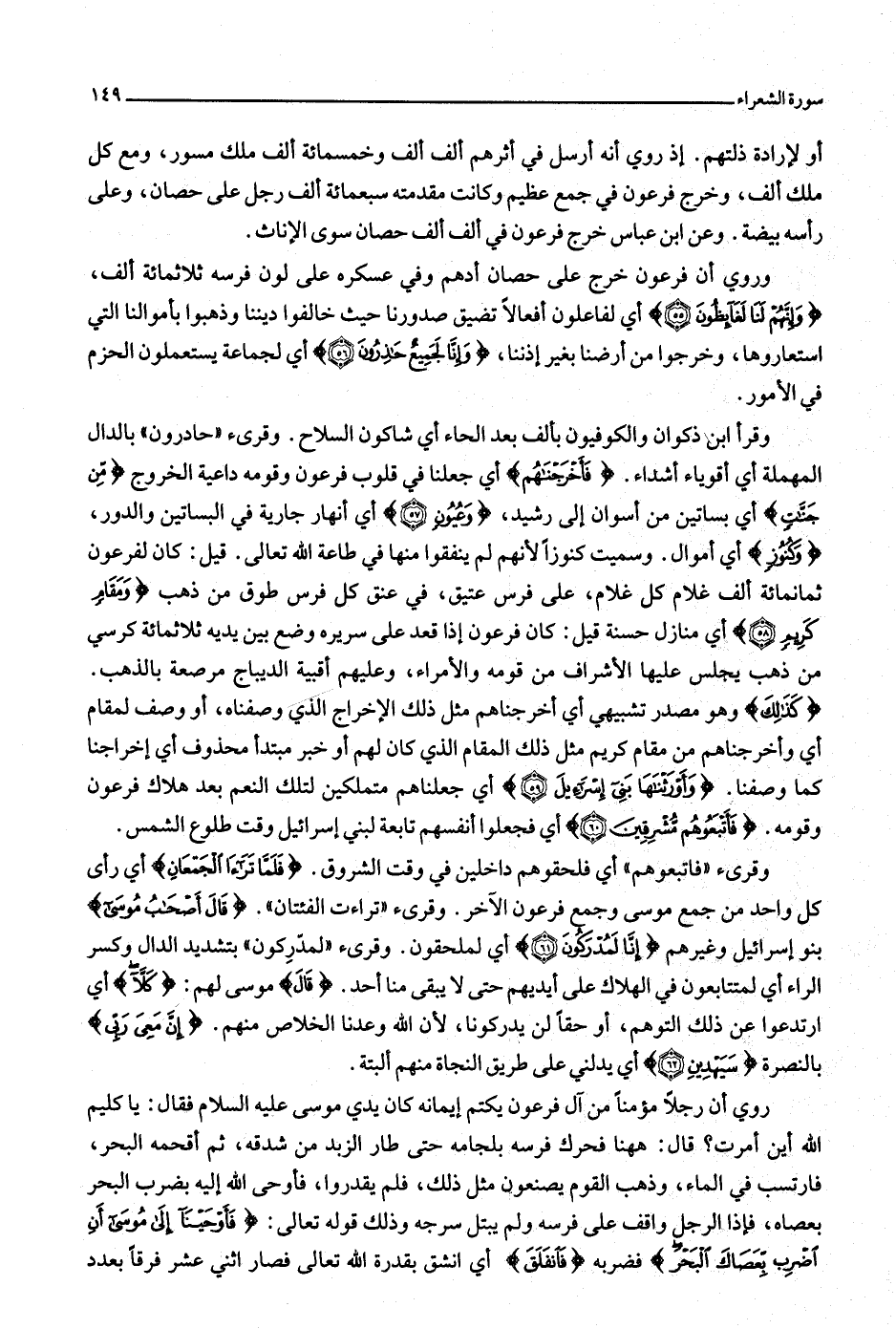 كَذلِكَ وهو مصدر تشبيهي أي أخرجناهم مثل ذلك الإخراج الذي وصفناه، أو وصف لمقام أي وأخرجناهم من مقام كريم مثل ذلك المقام الذي كان لهم أو خبر مبتدأ محذوف أي إخراجنا كما وصفنا. وَأَوْرَثْناها بَنِي إِسْرائِيلَ (59) أي جعلناهم متملكين لتلك النعم بعد هلاك فرعون وقومه. فَأَتْبَعُوهُمْ مُشْرِقِينَ (60) أي فجعلوا أنفسهم تابعة لبني إسرائيل وقت طلوع الشمس.