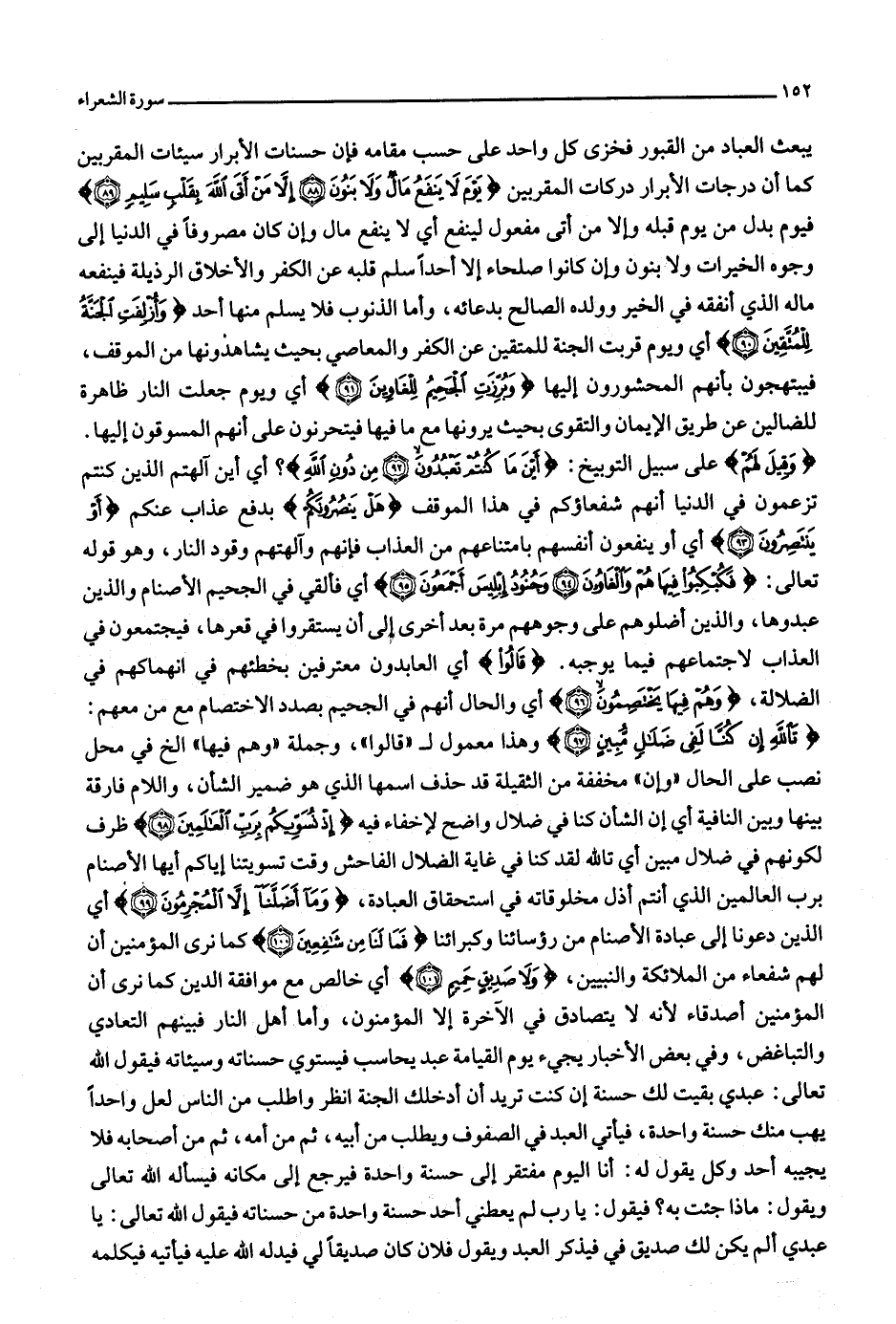 يبعث العباد من القبور فخزي كل واحد على حسب مقامه فإن حسنات الأبرار سيئات المقربين كما أن درجات الأبرار دركات المقربين يَوْمَ لا يَنْفَعُ مالٌ وَلا بَنُونَ (88) إِلَّا مَنْ أَتَى اللَّهَ بِقَلْبٍ سَلِيمٍ (89) فيوم بدل من يوم قبله وإلا من أتى مفعول لينفع أي لا ينفع مال وإن كان مصروفا في الدنيا إلى وجوه الخيرات ولا بنون وإن كانوا صلحاء إلا أحدا سلم قلبه عن الكفر والأخلاق الرذيلة فينفعه ماله الذي أنفقه في الخير وولده الصالح بدعائه، وأما الذنوب فلا يسلم منها أحد وَأُزْلِفَتِ الْجَنَّةُ لِلْمُتَّقِينَ (90) أي ويوم قربت الجنة للمتقين عن الكفر والمعاصي بحيث يشاهدونها من الموقف، فيبتهجون بأنهم المحشورون إليها