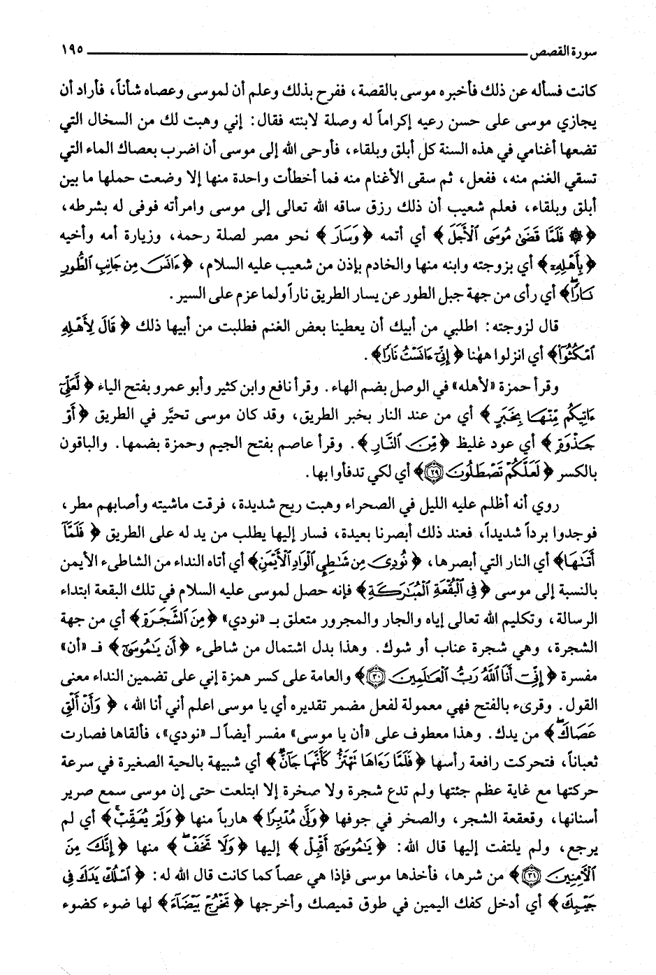 روي أنه أظلم عليه الليل في الصحراء وهبت ريح شديدة، فرقت ماشيته وأصابهم مطر، فوجدوا بردا شديدا، فعند ذلك أبصرنا بعيدة، فسار إليها يطلب من يد له على الطريق فَلَمَّا أَتاها أي النار التي أبصرها، نُودِيَ مِنْ شاطِئِ الْوادِ الْأَيْمَنِ أي أتاه النداء من الشاطئ الأيمن بالنسبة إلى موسى فِي الْبُقْعَةِ الْمُبارَكَةِ فإنه حصل لموسى عليه السلام في تلك البقعة ابتداء الرسالة، وتكليم الله تعالى إياه والجار والمجرور متعلق ب «نودي» مِنَ الشَّجَرَةِ أي من جهة الشجرة، وهي شجرة عناب أو شوك. وهذا بدل اشتمال من شاطئ أَنْ يا مُوسى ف «أن» مفسرة إِنِّي أَنَا اللَّهُ رَبُّ الْعالَمِينَ (30) والعامة على كسر همزة إني على تضمين النداء معنى القول. وقرئ بالفتح فهي معمولة لفعل مضمر تقديره أي يا موسى اعلم أني أنا الله،