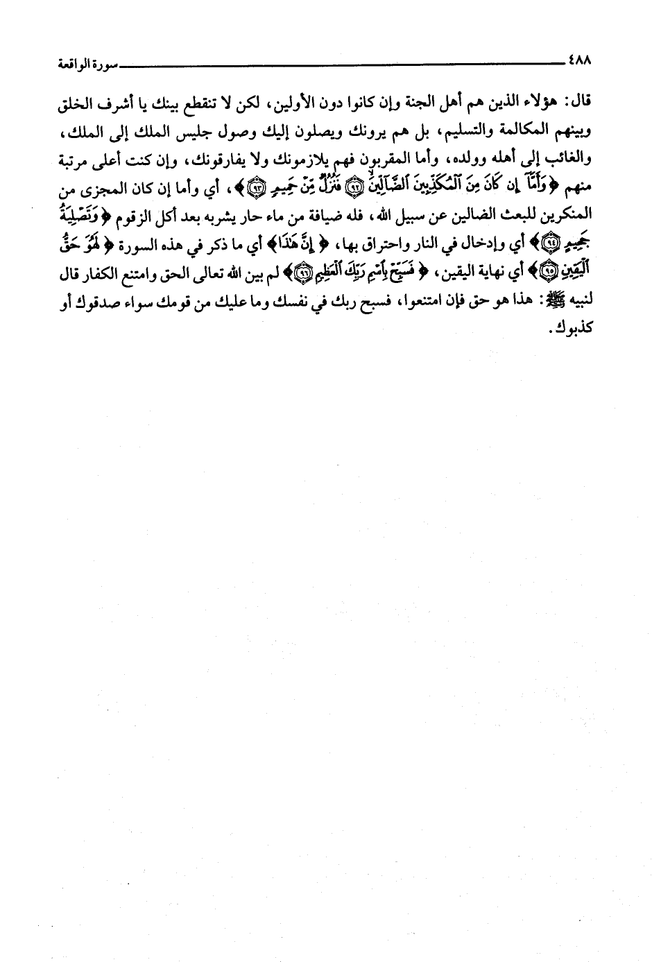 قال: هؤلاء الذين هم أهل الجنة وإن كانوا دون الأولين، لكن لا تنقطع بينك يا أشرف الخلق وبينهم المكالمة والتسليم، بل هم يرونك ويصلون إليك وصول جليس الملك إلى الملك، والغائب إلى أهله وولده، وأما المقربون فهم يلازمونك ولا يفارقونك، وإن كنت أعلى مرتبة منهم وَأَمَّا إِنْ كانَ مِنَ الْمُكَذِّبِينَ الضَّالِّينَ (92) فَنُزُلٌ مِنْ