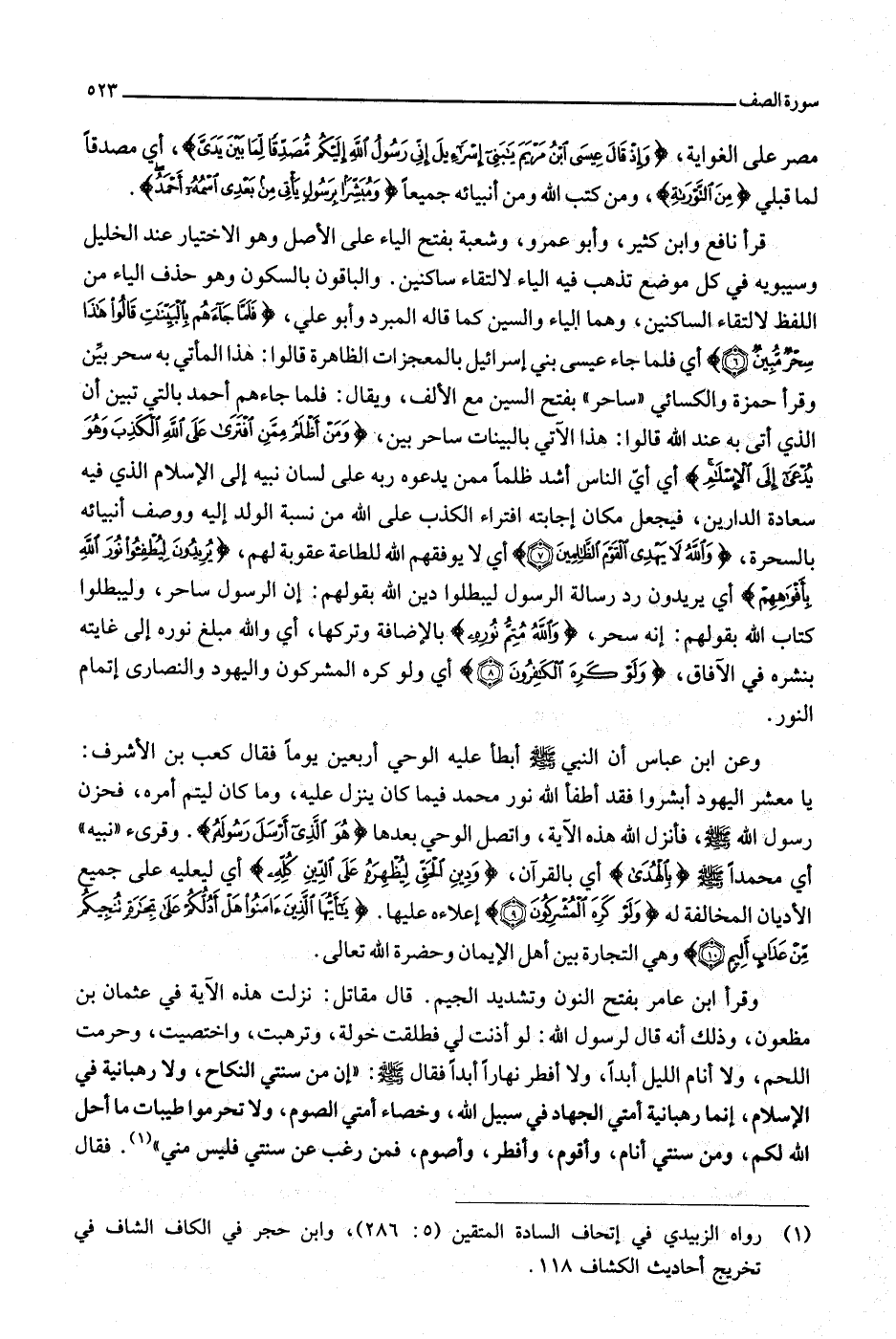 (1) رواه الزبيدي في إتحاف السادة المتقين (5: 286) ، وابن حجر في الكاف الشاف في تخريج أحاديث الكشاف 118.