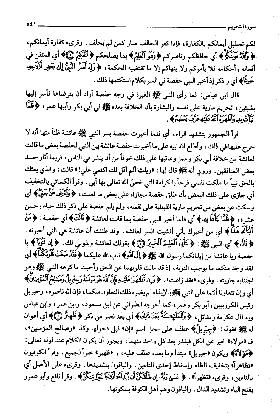 . وقرأ الكسائي بالتخفيف أي جازى على ذلك البعض بأن طلق حفصة مجازاة على بعض ما فعلت، وَأَعْرَضَ عَنْ بَعْضٍ أي وسكت عن بعض من تحريم مارية القبطية على نفسه، ولم يلم حفصة على ذكر ذلك حياء وحسن عشرة، فَلَمَّا نَبَّأَها بِهِ أي فلما أخبر النبي حفصة بما قالت لعائشة قالَتْ أي حفصة: مَنْ أَنْبَأَكَ هذا أي من أخبرك بأني أفشيت السر لعائشة، وقد ظننت أن عائشة هي التي أخبرته.