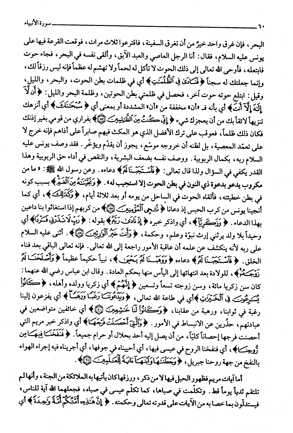 . وَنَجَّيْناهُ مِنَ الْغَمِّ بسبب كونه في بطن خطيئته، فألقاه الحوت في الساحل من يومه أو بعد ثلاثة أيام، وَكَذلِكَ، أي كما أنجينا يونس من كرب الحبس إذ دعانا نُنْجِي الْمُؤْمِنِينَ (88) من كربهم إذا استغاثوا بنا داعين بهذا الدعاء. وَزَكَرِيَّا، أي واذكر خبره إِذْ نادى رَبَّهُ بقوله: رَبِّ لا تَذَرْنِي فَرْداً أي وحيدا بلا ولد يرثني إرث نبوّة وعلم، وحكمة، وَأَنْتَ خَيْرُ الْوارِثِينَ (89) . أثنى عليه السلام على ربه لأنه ينكشف عن علمه أن عاقبة الأمور راجعة إلى الله تعالى. فإنه تعالى الباقي بعد فناء الخلق. فَاسْتَجَبْنا لَهُ دعاءه وَوَهَبْنا لَهُ يَحْيى، نبيا حكيما عظيما وَأَصْلَحْنا لَهُ زَوْجَهُ، للولادة بعد انتهائها إلى اليأس منها بحكم العادة. وقال ابن عباس رضي الله عنهما: