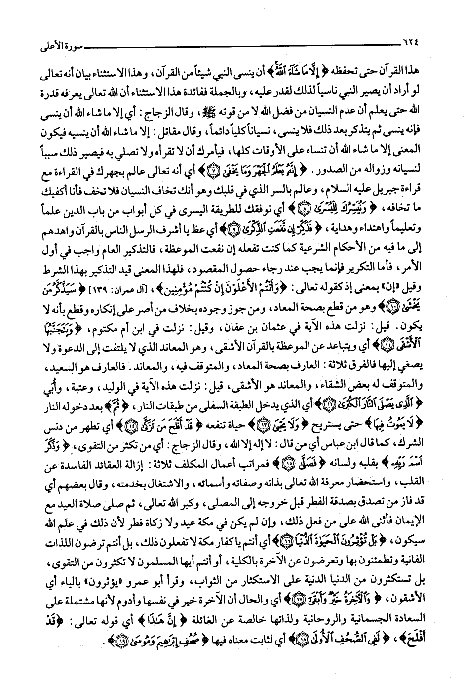 (11) أي ويتباعد عن الموعظة بالقرآن الأشقى، وهو المعاند الذي لا يلتفت إلى الدعوة ولا يصغي إليها فالفرق ثلاثة: العارف بصحة المعاد، والمتوقف فيه، والمعاند. فالعارف هو السعيد، والمتوقف له بعض الشقاء، والمعاند هو الأشقى، قيل: نزلت هذه الآية في الوليد، وعتبة، وأبي الَّذِي يَصْلَى النَّارَ الْكُبْرى (12) أي الذي يدخل الطبقة السفلى من طبقات النار، ثُمَّ بعد دخوله النار لا يَمُوتُ فِيها حتى يستريح وَلا يَحْيى (13) حياة تنفعه قَدْ أَفْلَحَ مَنْ تَزَكَّى (14) أي تطهر من دنس الشرك، كما قال ابن عباس أي من قال: لا إله إلا الله، وقال الزجاج: أي من تكثر من التقوى، وَذَكَرَ اسْمَ رَبِّهِ بقلبه ولسانه فَصَلَّى (15) فمراتب أعمال المكلف ثلاثة: إزالة العقائد الفاسدة عن القلب، واستحضار معرفة الله تعالى بذاته وصفاته وأسمائه، والاشتغال بخدمته، وقال بعضهم أي قد فاز من تصدق بصدقة الفطر قبل خروجه إلى المصلى، وكبر الله تعالى، ثم صلى صلاة العيد مع الإيمان فأثنى الله على من فعل ذلك، وإن لم يكن في مكة عيد ولا زكاة فطر لأن ذلك في علم الله سيكون، بَلْ تُؤْثِرُونَ الْحَياةَ الدُّنْيا (16) أي أنتم يا كفار مكة لا تفعلون ذلك، بل أنتم ترضون اللذات الفانية وتطمئنون بها وتعرضون عن الآخرة بالكلية، أو أنتم أيها المسلمون لا تكثرون من التقوى، بل تستكثرون من الدنيا الدنية على الاستكثار من الثواب، وقرأ أبو عمرو «يؤثرون» بالياء أي الأشقون، وَالْآخِرَةُ خَيْرٌ وَأَبْقى (17) أي والحال أن الآخرة خير في نفسها وأدوم لأنها مشتملة على السعادة الجسمانية والروحانية ولذاتها خالصة عن الغائلة إِنَّ هذا أي قوله تعالى: قَدْ أَفْلَحَ، لَفِي الصُّحُفِ الْأُولى (18) أي لثابت معناه فيها صُحُفِ إِبْراهِيمَ وَمُوسى (19) .