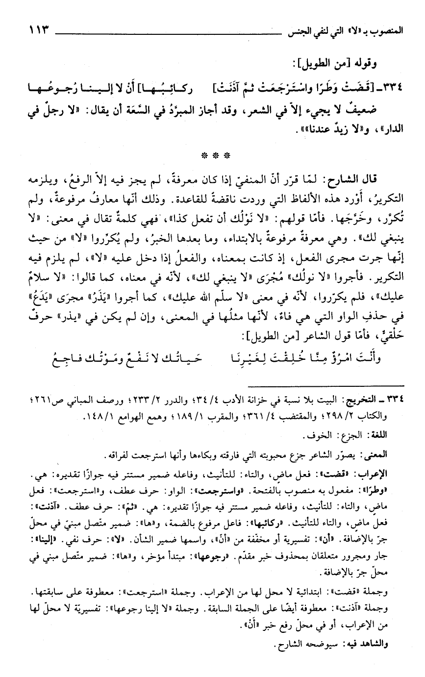334 - قضت وطراً واسترجعت ثم آذنت] ... ركائبها] أن لا إلينا رجوعها