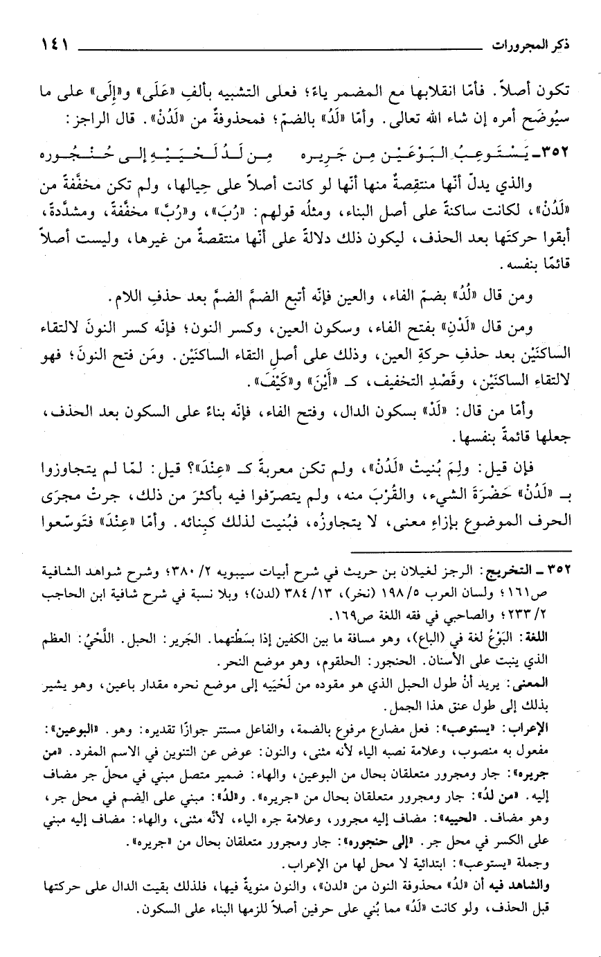352 - يَسْتَوعِبُ البَوْعَيْن مِن جَرِيره ... مِن لَدُ لَحْيَيْهِ إلى حُنْجُوره