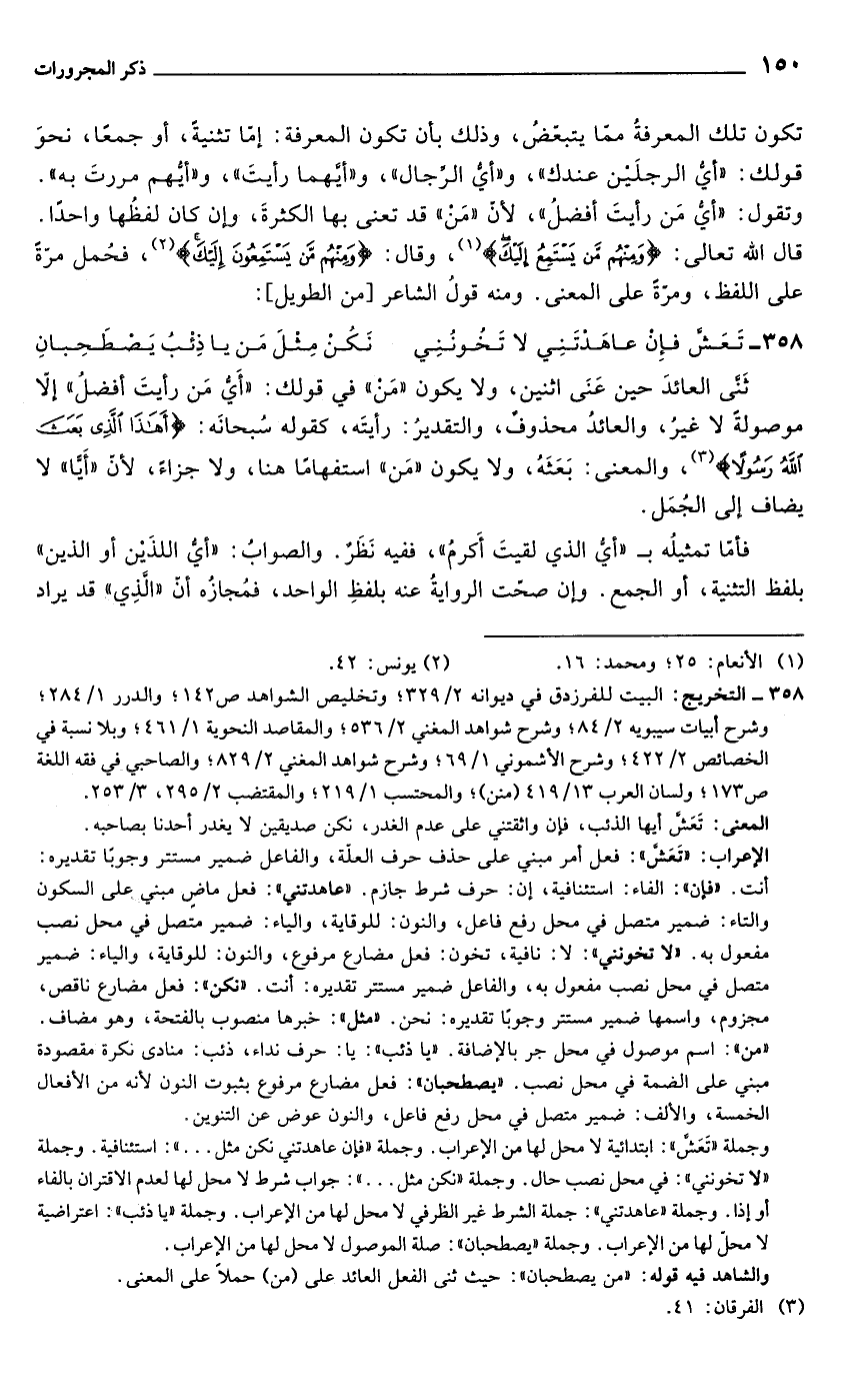 358 - التخريج: البيت للفرزدق في ديوانه 2/ 329؛ وتخليص الشواهد ص 142؛ والدرر 1/ 284؛ وشرح أبيات سيبويه 2/ 84؛ وشرح شواهد المغني 2/ 536؛ والمقاصد النحوية 1/ 461؛ وبلا نسبة في الخصائص 2/ 422؛ وشرح الأشموني 1/ 69؛ وشرح شواهد المغني 2/ 829؛ والصاحبي في فقه اللغة ص 173؛ ولسان العرب 13/ 419 (منن)؛ والمحتسب 1/ 219؛ والمقتضب 2/ 295، 3/ 253.