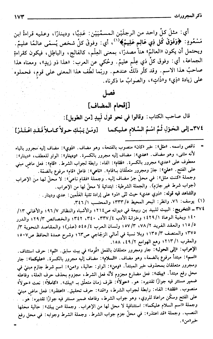 أي: مثلَ كل واحد من الرجلَين المسميَيْن: عَدِيًا، ودينارًا، وعليه قراءةُ ابن مَسْعُودٍ: {وَفَوْقَ كُلِّ ذِي عِلْمٍ عَلِيمٌ} (¬1)، أي: وفوق كل شخص يُسمى عالمًا عليمٌ. ويحتمل أن يكون "العالمُ" هنًا مصدرًا، بمعنى العِلْم، كالفالج، والباطل، فيكون كقراءةِ الجماعة، أي: وفوق كل ذي عِلْم عليمٌ. وحُكي عن العرب: "هذا ذو زيدٍ"، ومعناه هذا صاحبُ هذا الاسم. وقد كثُر ذلك عندهم. وربّما لطُف هذا المعنى على قوم، فحملوه على زيادة "ذِي" و"ذات"، والصوابُ ما ذكرناه.