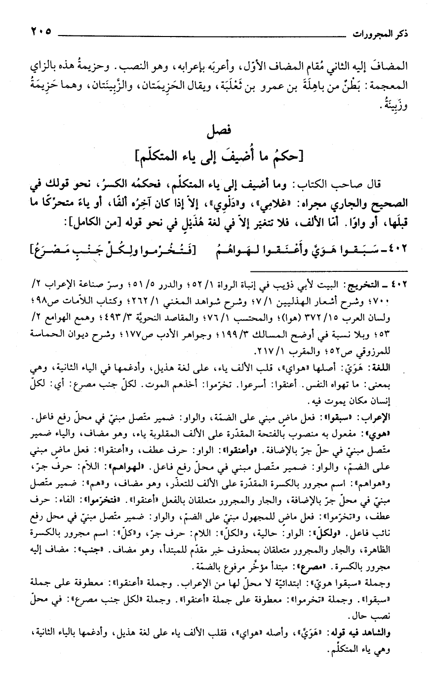 402 - التخريج: البيت لأبي ذؤيب في إنباة الرواة 1/ 52؛ والدرر 5/ 51؛ وسرّ صناعة الإعراب 2/ 700؛ وشرح أشعار الهذليين 1/ 7؛ وشرح شواهد المغني 1/ 262؛ وكتاب اللاّمات ص 98؛ ولسان العرب 15/ 372 (هوا)؛ والمحتسب 1/ 76؛ والمقاعد النحويْة 3/ 493؛ وهمع الهوامع 2/ 53؛ وبلا نسبة في أوضح المسالك 3/ 199؛ وجواهر الأدب ص 177؛ وشرح ديوان الحماسة للمرزوقي ص 52؛ والمقرب 1/ 217.