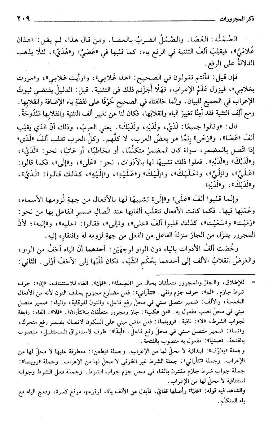 وإنّما قلبوا ألفَ "عَلَى" و"إلَى" تشبيهًا لها بالأفعال من جهةِ لزومها الأسماء، وعَمَلِها فيها. فكما كانت الأفعال تنقلَب ألفاتِها عند اتصالِ ضميرِ الفاعل بها من نحو: "رَمَيْت" و"سَعَيت"، كذلك قلبوا ألفَ "على"، و"إلى"، فقالوا: "عليه"، و"إليه"؛ لأن المجرور يتنزل من الجارّ منزلةَ الفاعل من الفعل من جهةِ لزومِه له وافتقارِه إليه.