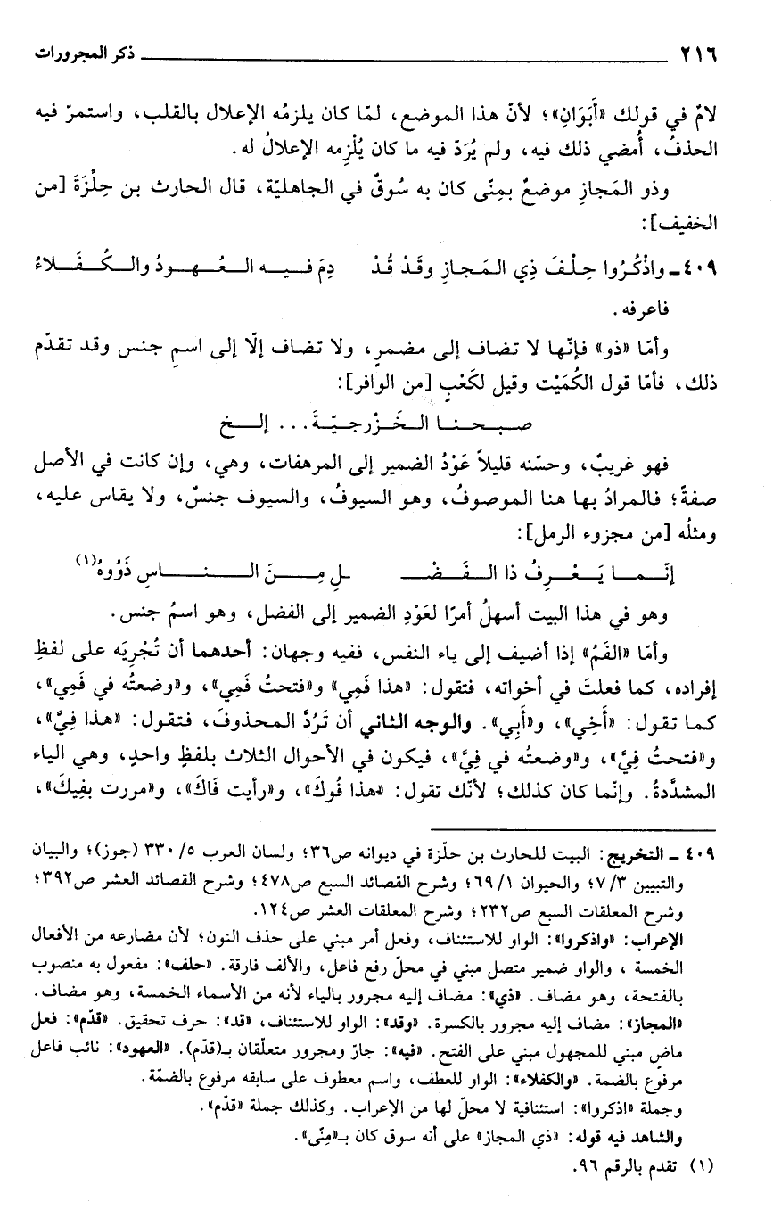 409 - واذكرُوا حِلفَ ذِي المَجازِ وقَدْ قُدْ ... دِمَ فيه العُهودُ والكُفَلاءُ