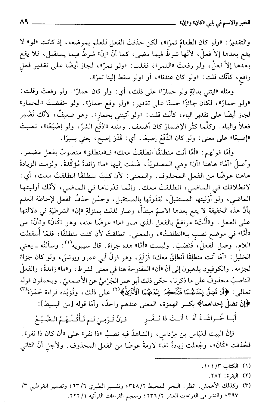 فإنَّ البيت لعَبّاس بن مِرْداسٍ، والشاهدُ فيه نصبُ "ذا نفر" على "أن كان ذا نفر". فحُذفت "كَانَ"، وجُعلت زيادةُ "مَا" لازمة عوضًا من الفعل المحذوف. ولأجلِ أنّ الثاني