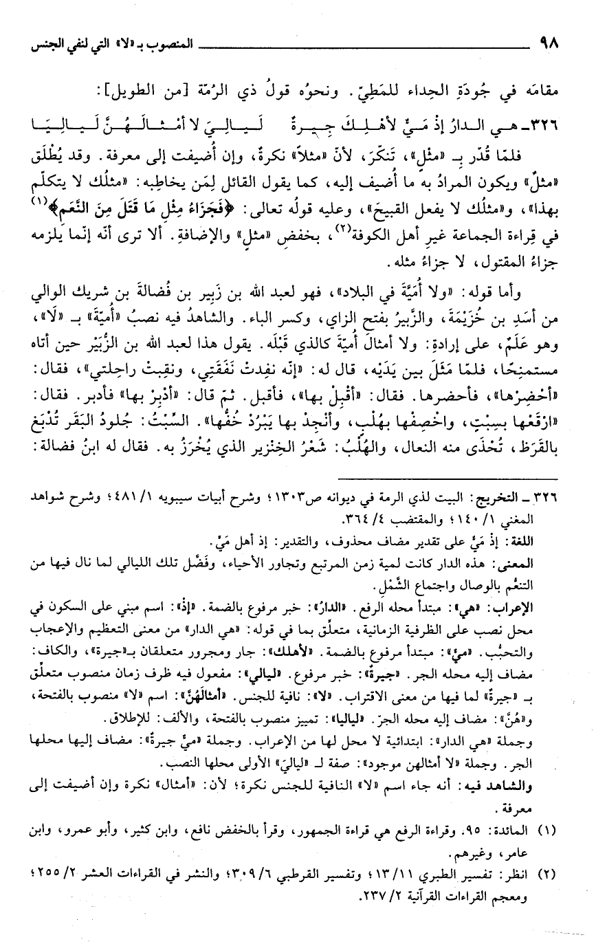 326 - التخريج: البيت لذي الرمة في ديوانه ص 1303؛ وشرح أبيات سيبويه 1/ 481؛ وشرح شواهد المغني 1/ 140؛ والمقتضب 4/ 364.