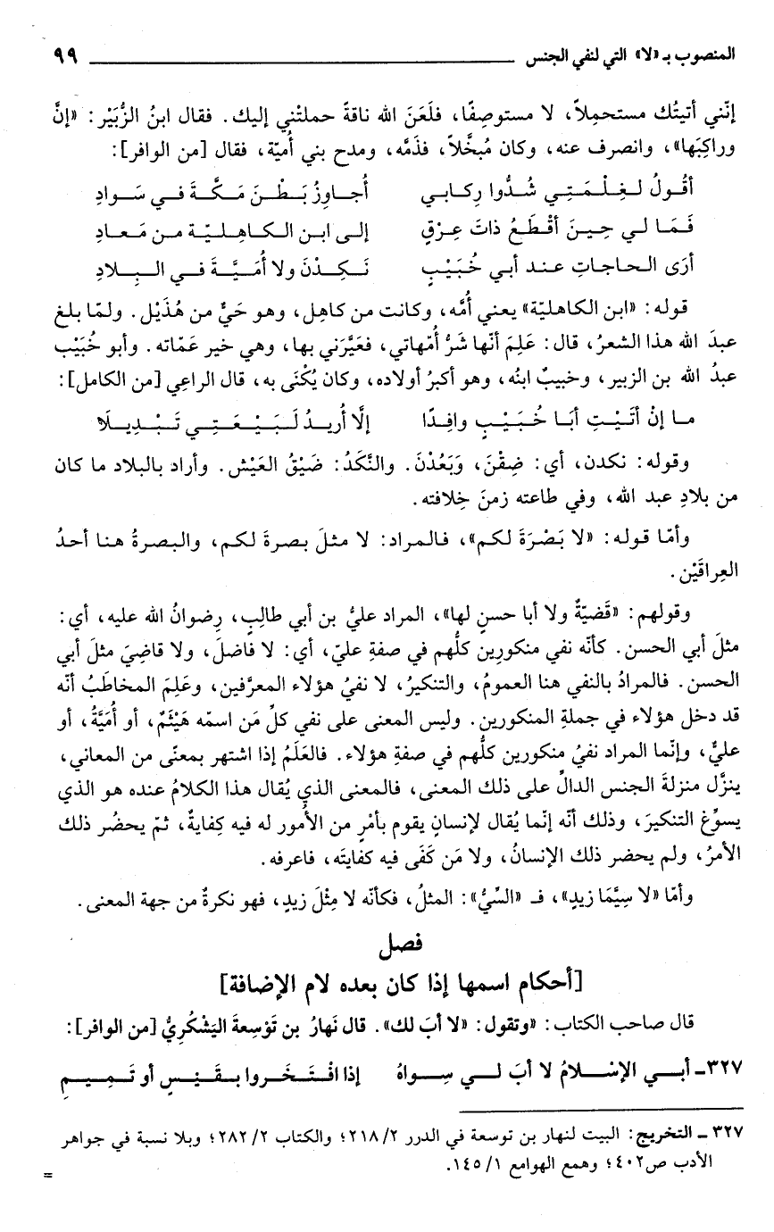 327 - التخريج: البيت لنهار بن توسعة في الدرر 2/ 218؛ والكتاب 2/ 282؛ وبلا نسبة في جواهر الأدب ص 402؛ وهمع الهوامع 1/ 145.