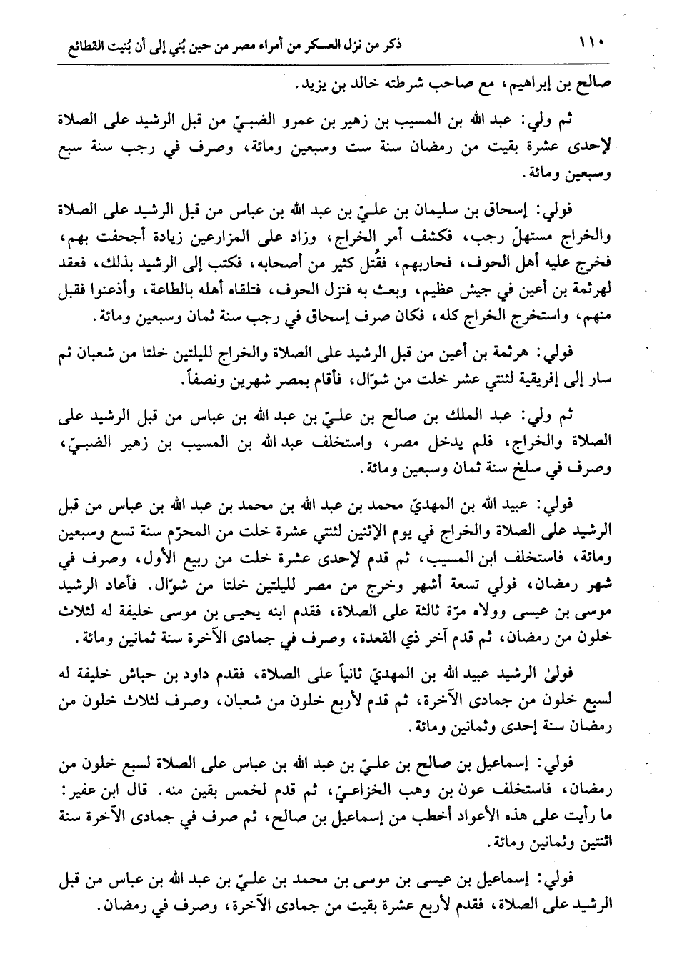 فولي: هرثمة بن أعين من قبل الرشيد على الصلاة والخراج لليلتين خلتا من شعبان ثم سار إلى إفريقية لثنتي عشر خلت من شوّال، فأقام بمصر شهرين ونصفا.