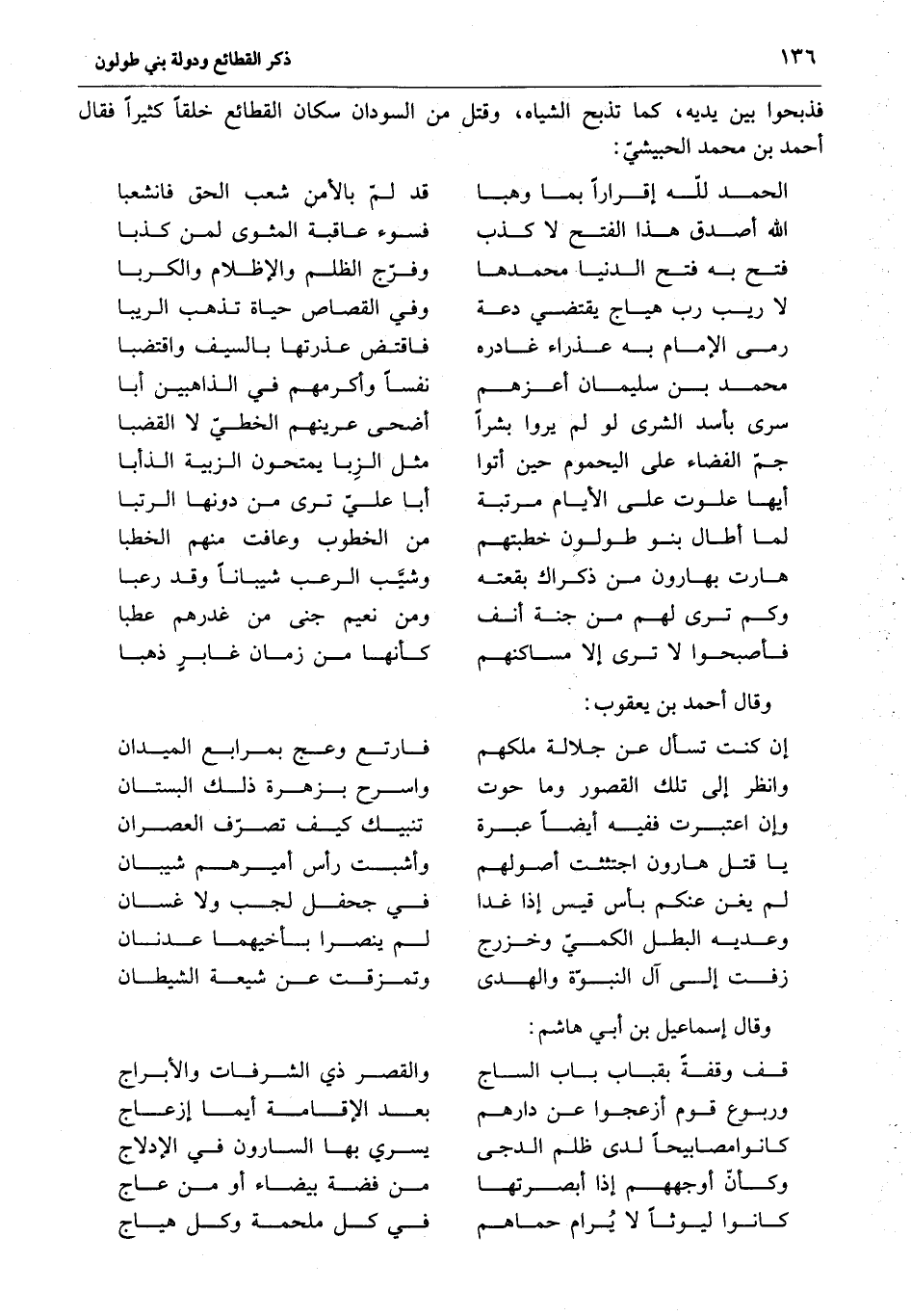فذبحوا بين يديه، كما تذبح الشياه، وقتل من السودان سكان القطائع خلقا كثيرا فقال أحمد بن محمد الحبيشيّ: