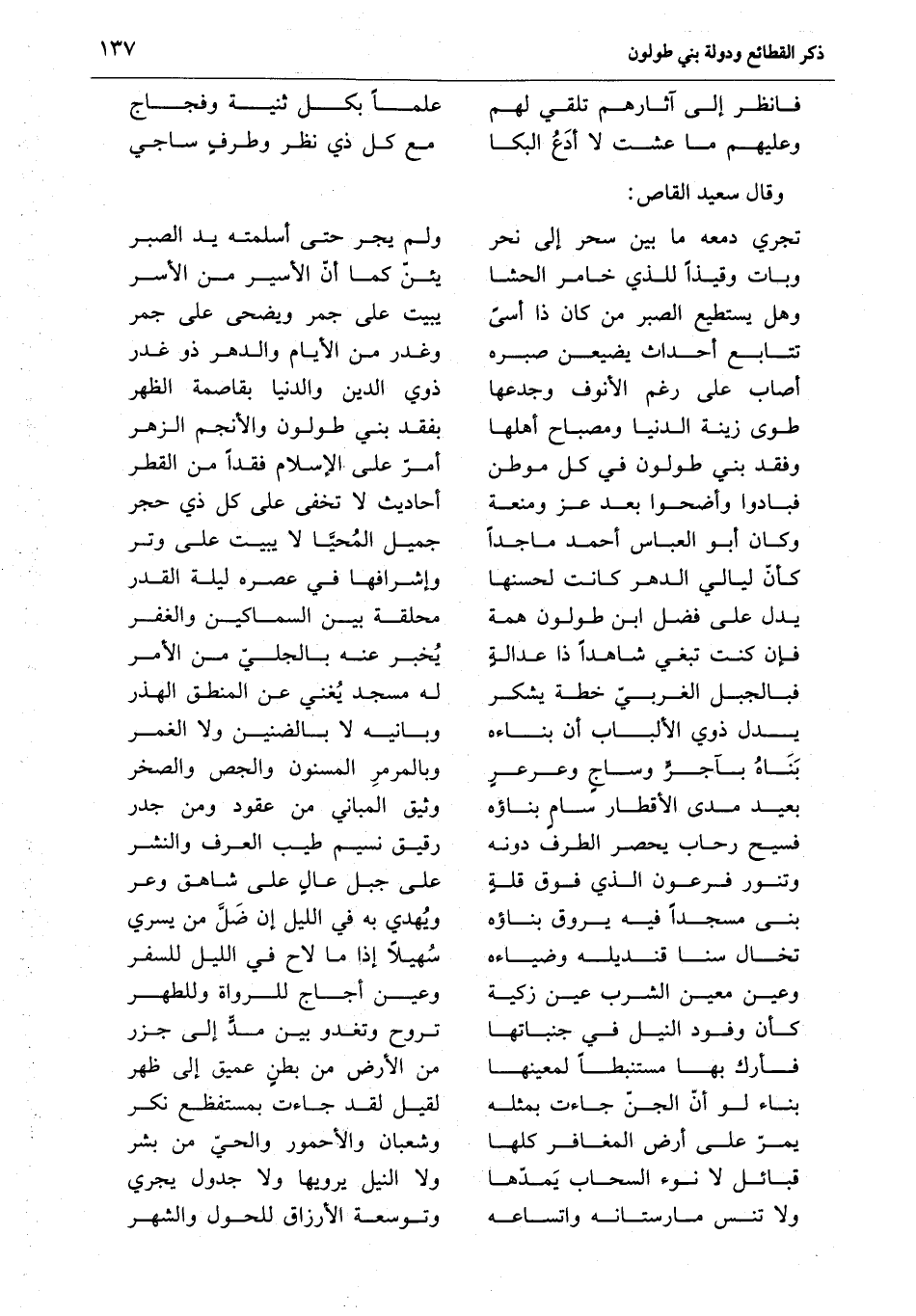 وفقد بني طولون في كل موطن ... أمرّ على الإسلام فقدا من القطر