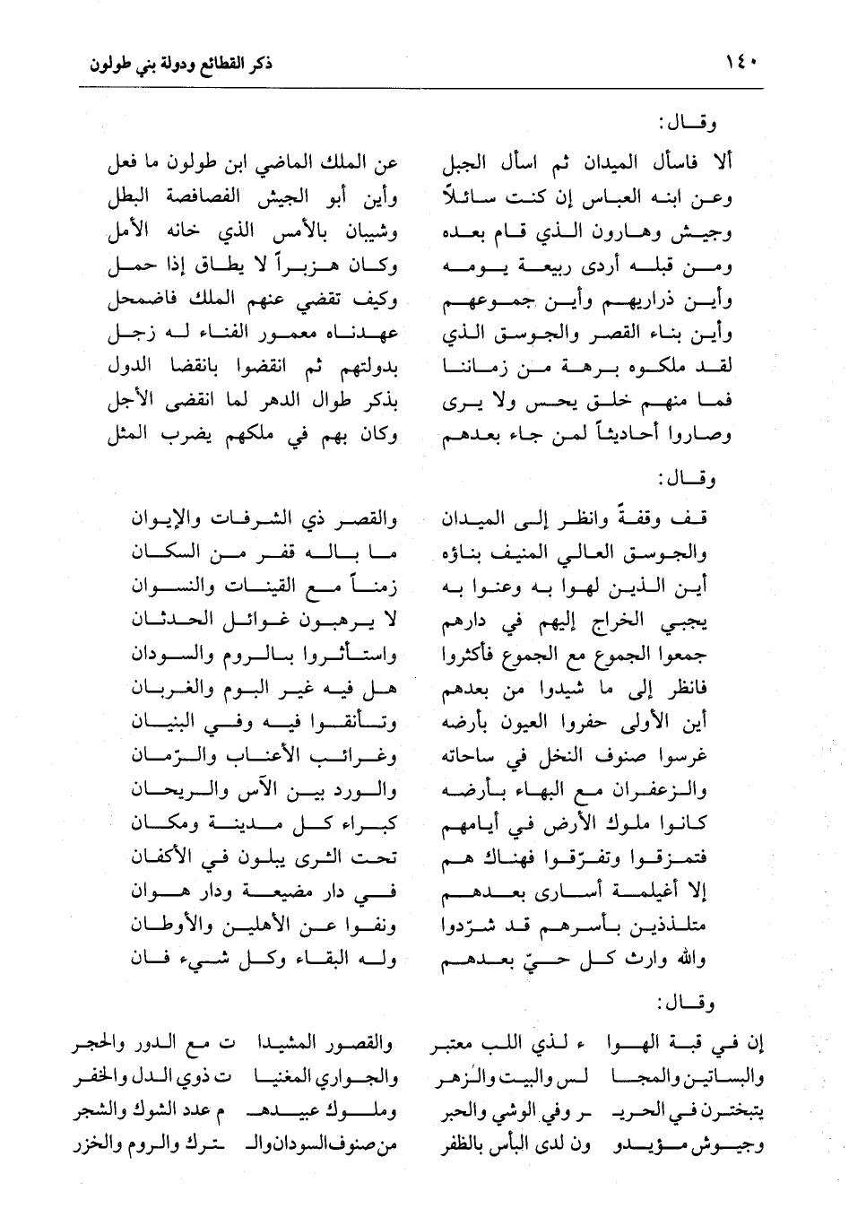 ألا فاسأل الميدان ثم اسأل الجبل ... عن الملك الماضي ابن طولون ما فعل