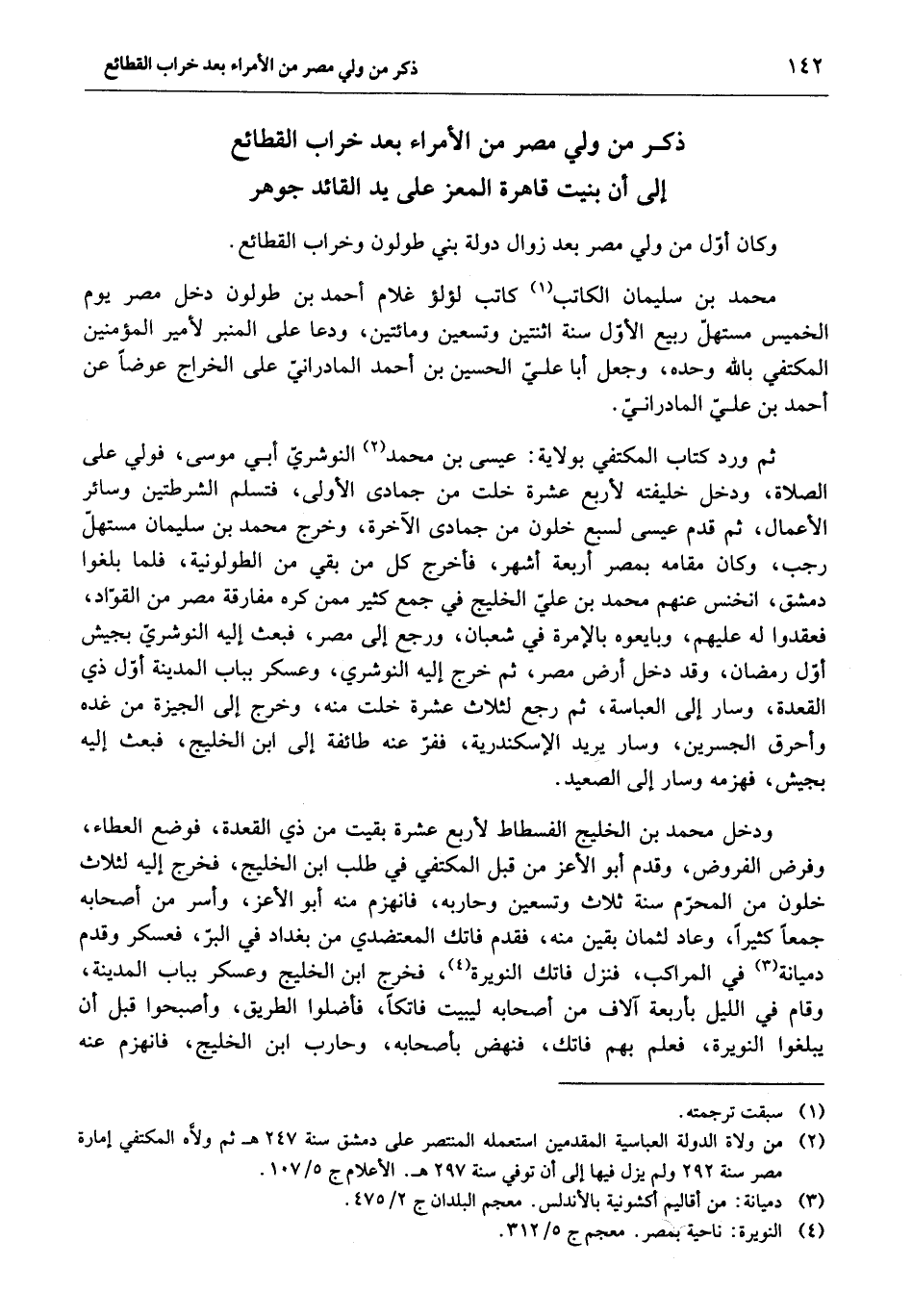 ذكر من ولي مصر من الأمراء بعد خراب القطائع إلى أن بنيت قاهرة المعز على يد القائد جوهر