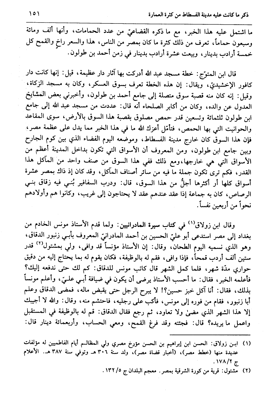 ما اشتمل عليه هذا الخبر، مع ما ذكره القضاعيّ من عدد الحمامات، وأنها ألف ومائة وسبعون حماما، تعرف من ذلك كثرة ما كان بمصر من الناس، هذا والسعر راخ والقمح كل خمسة أرادب بدينار، وبيعت عشرة أرادب بدينار في زمن أحمد بن طولون.