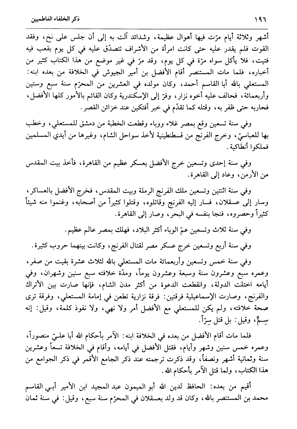 وفي سنة تسعين وقع بمصر غلاء ووباء وقطعت الخطبة من دمشق للمستعلي، وخطب بها للعباسيّ، وخرج الفرنج من قسطنطينية لأخذ سواحل الشام، وغيرها من أيدي المسلمين فملكوا أنطاكية.