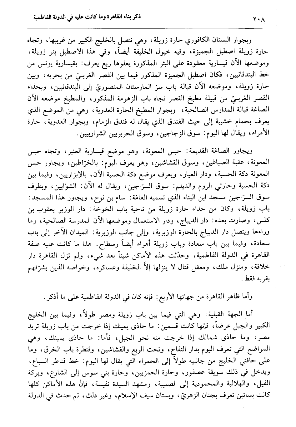 وأما ظاهر القاهرة من جهاتها الأربع: فإنه كان في الدولة الفاطمية على ما أذكر.
