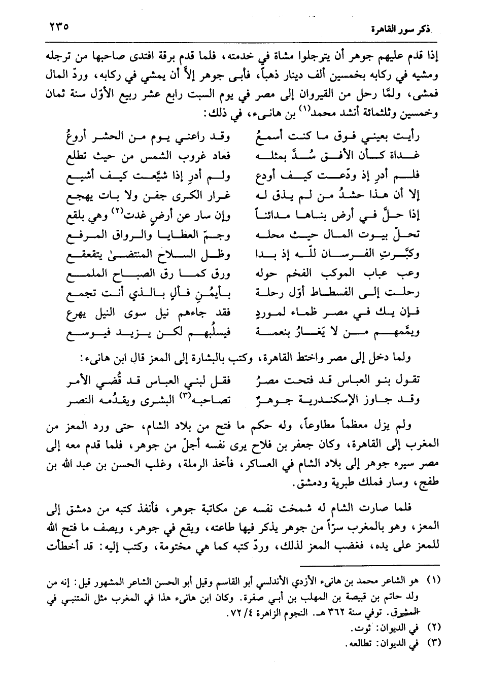 ولما دخل إلى مصر واختط القاهرة، وكتب بالبشارة إلى المعز قال ابن هانىء: