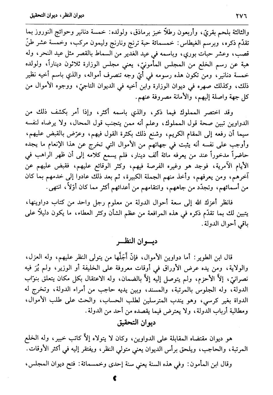 فانظر أعزك الله إلى سعة أحوال الدولة من معلوم رجل واحد من كتاب دواوينها، يتبين لك بما تقدّم ذكره في هذه المرافعة من عظم الشأن وكثر العطاء، ما يكون دليلا على باقي أحوال الدولة.
