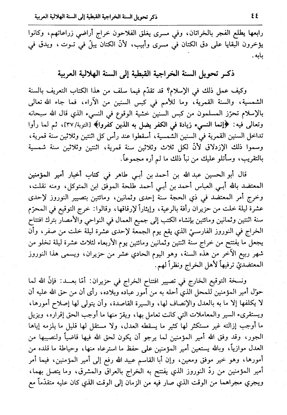 ذكر تحويل السنة الخراجية القبطية إلى السنة الهلالية العربية