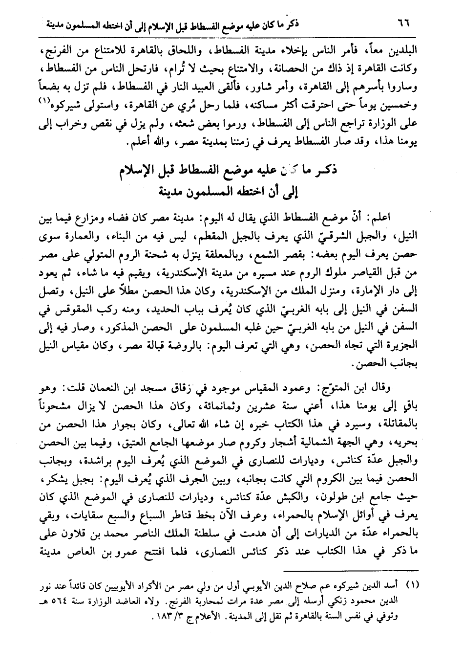 ذكر ما كان عليه موضع الفسطاط قبل الإسلام إلى أن اختطه المسلمون مدينة