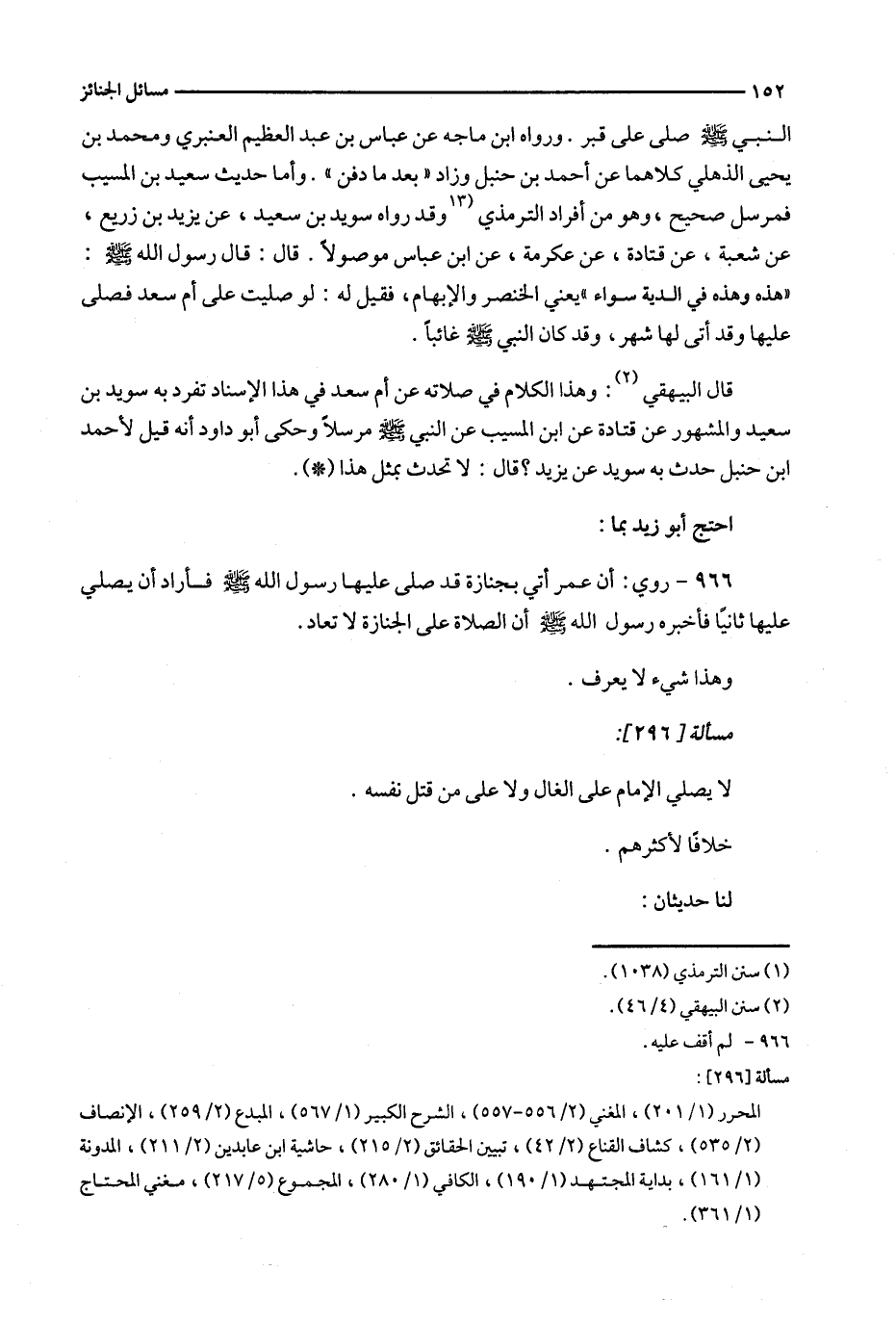 966 - روي : أن عمر أتي بجنازة قد صلى عليها رسول الله فأراد أن يصلي عليها ثانيا فأخبره رسول الله أن الصلاة على الجنازة لا تعاد .