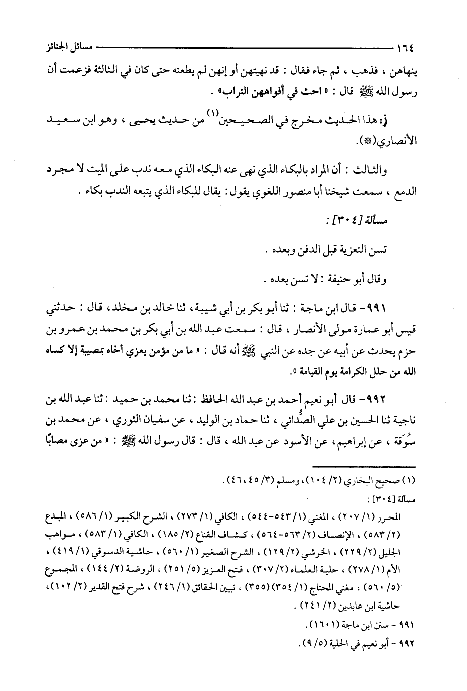 992 - قال أبو نعيم أحمد بن عبد الله الحافظ : ثنا محمد بن حميد : ثنا عبد الله بن ناجية ثنا الحسين بن علي الصدائي ، ثنا حماد بن الوليد ، عن سفيان الثوري ، عن محمد بن سوقة ، عن إبراهيم ، عن الأسود عن عبد الله ، قال : قال رسول الله : ' من عزى مصابا