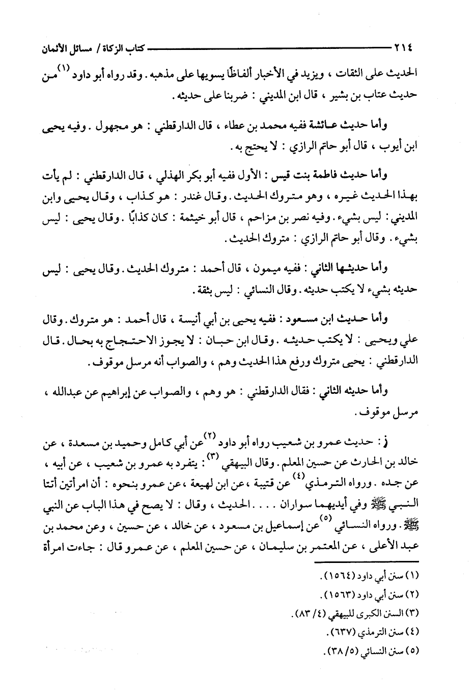 ز : حديث عمرو بن شعيب رواه أبو داود عن أبي كامل وحميد ين مسعدة ، عن خالد بن الحارث عن حسين المعلم .