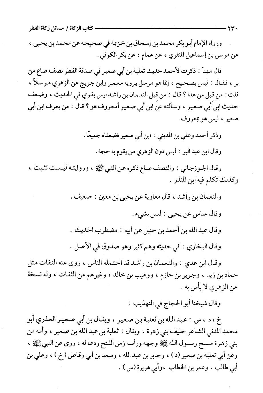 قال مهنأ : ذكرت لأحمد حديث ثعلبة بن أبي صعير في صدقة الفطر نصف صاع من بر ، فقال : ليس بصحيح ، إنما هو مرسل يرويه معمر وابن جريج عن الزهري مرسلا ، قلت : من قبل من هذا ؟ قال : من قبل النعمان بن راشد ليس بقوي في الحديث ، وضعف حديث ابن أبي صعير ، وسألته عن ابن أبي صعير أمعروف هو ؟ قال : من يعرف ابن أبي صعير ، ليس هو بمعروف .