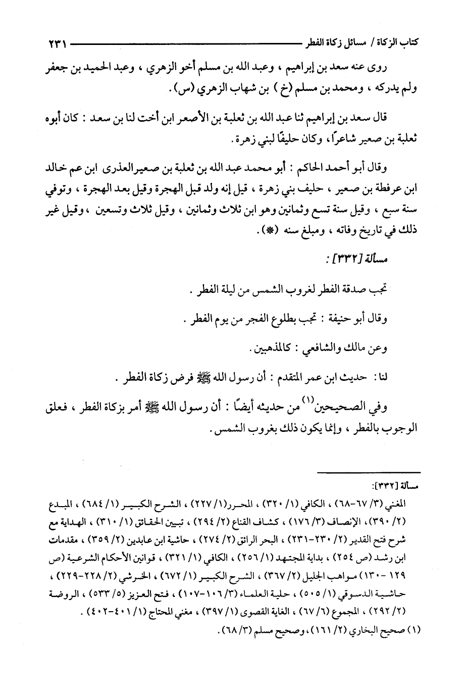 وفي الصحيحين من حديثه أيضا : أن رسول الله أمر بزكاة الفطر ، فعلق الوجوب بالفطر ، وإنما يكون ذلك بغروب الشمس .