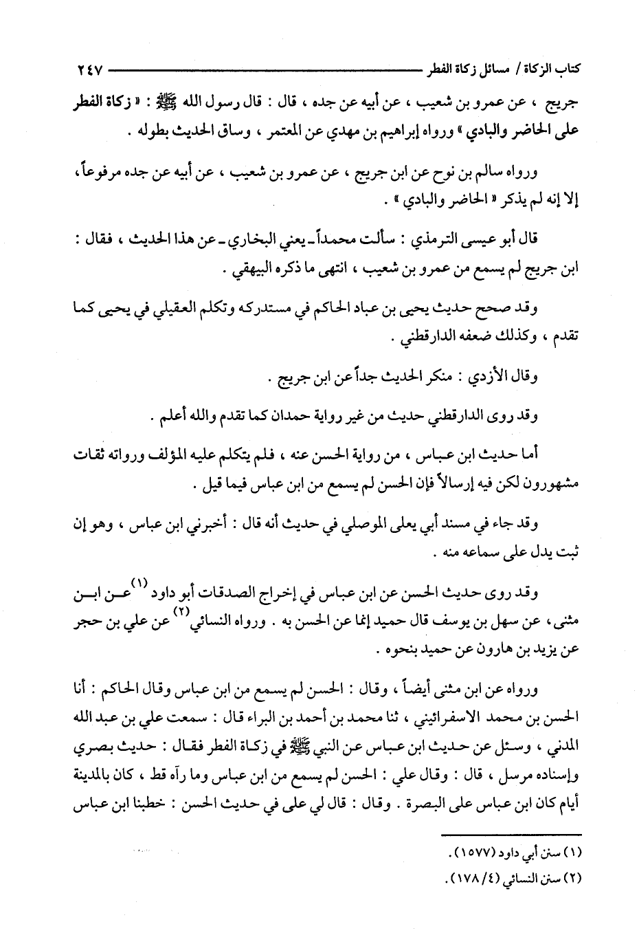 ورواه عن ابن مثنى أيضا ، وقال : الحسن لم يسمع من ابن عباس وقال الحاكم : أنا الحسن بن محمد الاسفرائيني ، ثنا محمد بن أحمد بن البراء قال : سمعت علي بن عبد الله المدني ، وسئل عن حديث ابن عباس عن النبي في زكاة الفطر فقال : حديث بصري وإسناده مرسل ، قال : وقال علي : الحسن لم يسمع من ابن عباس وما رآه قط ، كان بالمدينة أيام كان ابن عباس على البصرة .