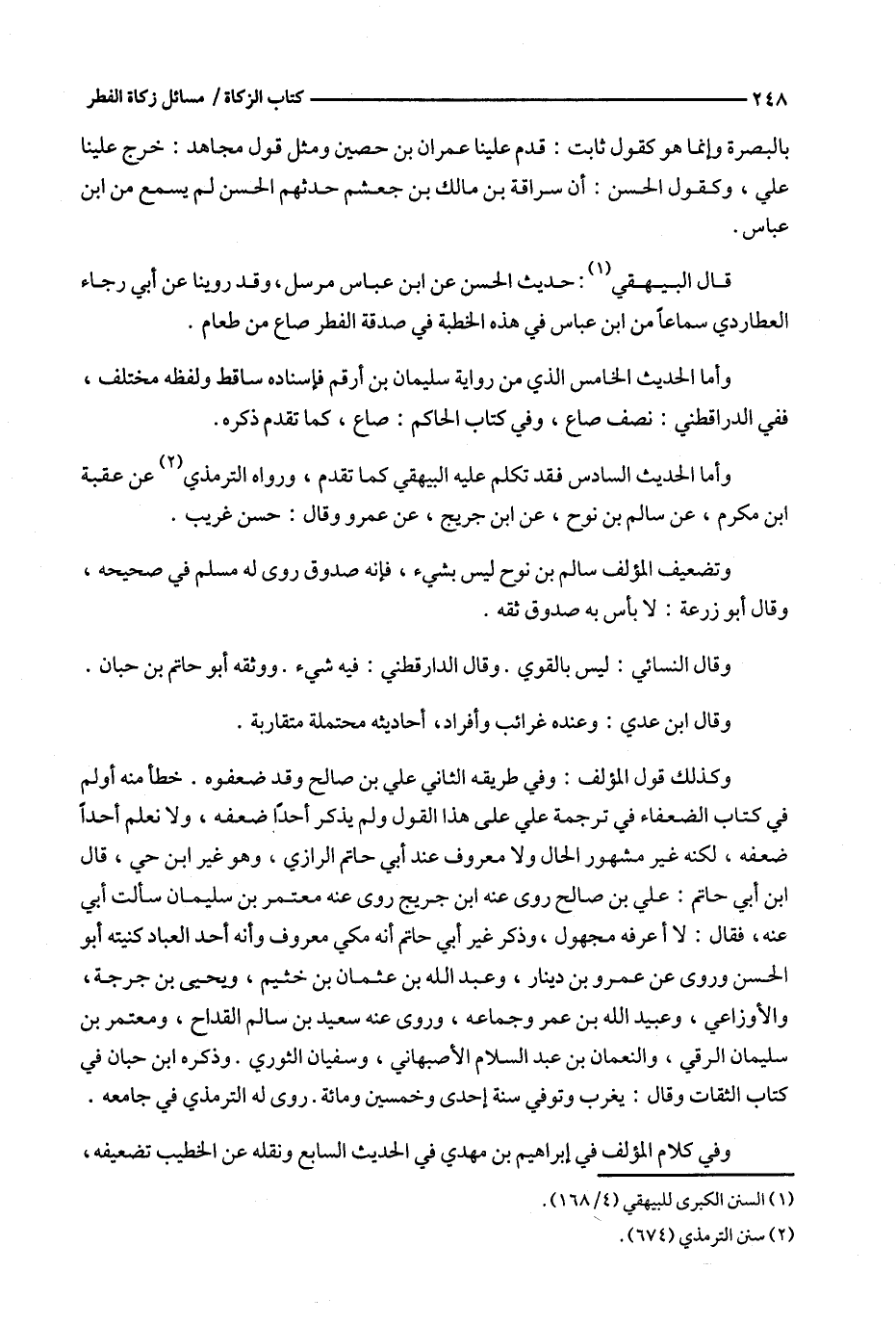قال البيهقي : حديث الحسن عن ابن عباس مرسل ، وقد روينا عن أبي رجاء العطاردي سماعا من ابن عباس في هذه الخطبة في صدقة الفطر صاع من طعام .