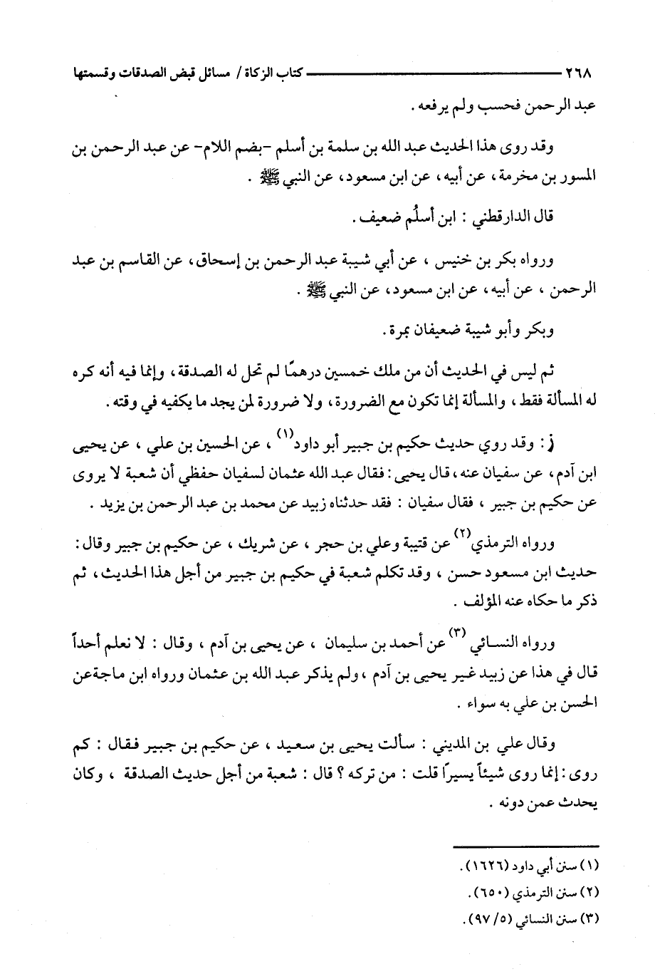 ورواه الترمذي عن قتيبة وعلي بن حجر ، عن شريك ، عن حكيم بن جبير وقال ك حديث ابن مسعود حسن ، وقد تكلم شعبة في حكيم بن جبير من أجل هذا الحديث ، ثم ذكر ما حكاه عنه المؤلف .