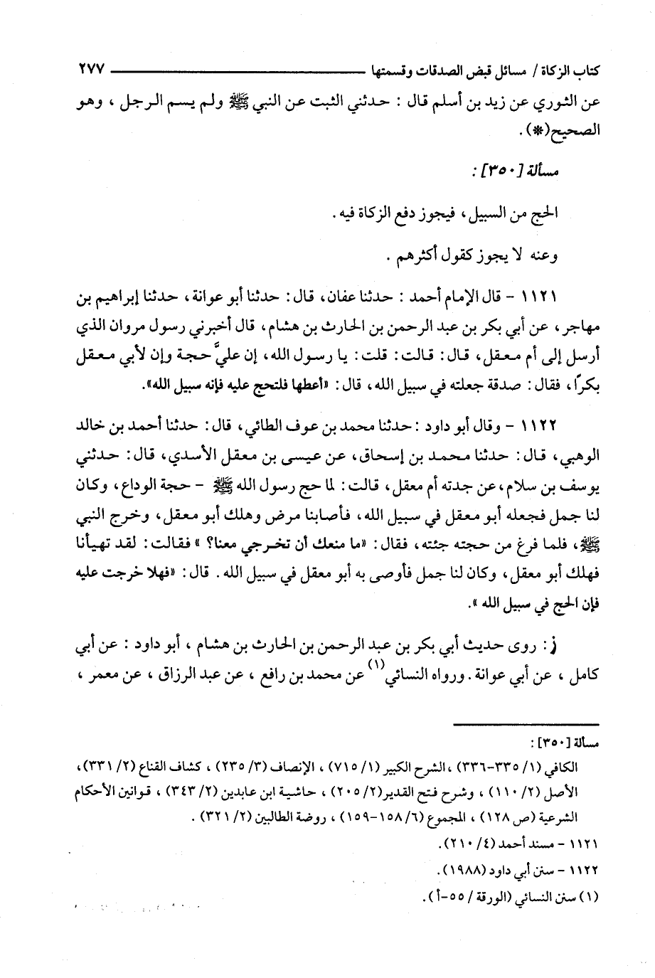 1121 - قال الإمام أحمد : حدثنا عفان ، قال : حدثنا أبو عوانة ، حدثنا إبراهيم بن مهاجر ، عن أبي بكر بن عبد الرحمن بن الحارث بن هشام ، قال أخبرني رسول مروان الذي أرسل إلى أم معقل ، قال : قالت : قلت : يا رسول الله ، إن علي حجة وإن لأبي معقل بكرا ، فقال : صدقة جعلته في سبيل الله ، قال : ' أعطها فلتحج عليه فإنه سبيل الله ' .
