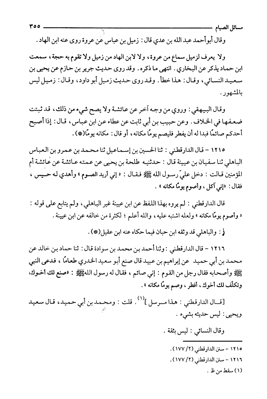 1215 - قال الدارقطني : ثنا الحسين بن إسماعيل ثنا محمد بن عمرو بن العباس الباهلي ثنا سفيان بن عيينة قال : حدثنيه طلحة بن يحي عن عمته عائشة عن عائشة أم المؤمنين قالت : دخل علي رسول الله فقال : ' إني أريد الصوم ' وأهدي له حيس ، فقال : ' إني آكل ، وأصوم يوما مكانه ' .