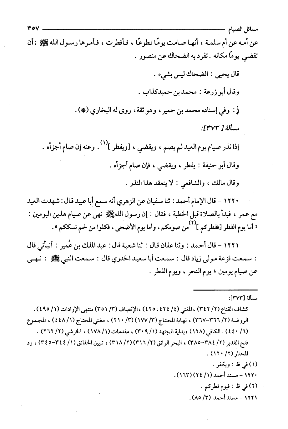 1221 - قال أحمد : وثنا عفان قال : ثنا شعبة قال : عبد الملك بن عمير : أنبأني قال : سمعت قزعة مولى زياد قال : سمعت أبا سعيد الخدري قال : سمعت النبي : نهى عن صيام يومين ؛ يوم النحر ، ويوم الفطر .