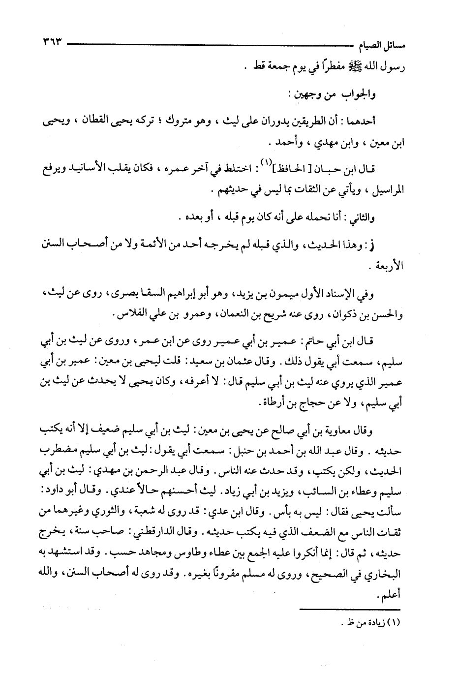 ز : وهذا الحديث ، والذي قبله لم يخرجه أحد من الأئمة ولا من أصحاب السنن الأربعة .