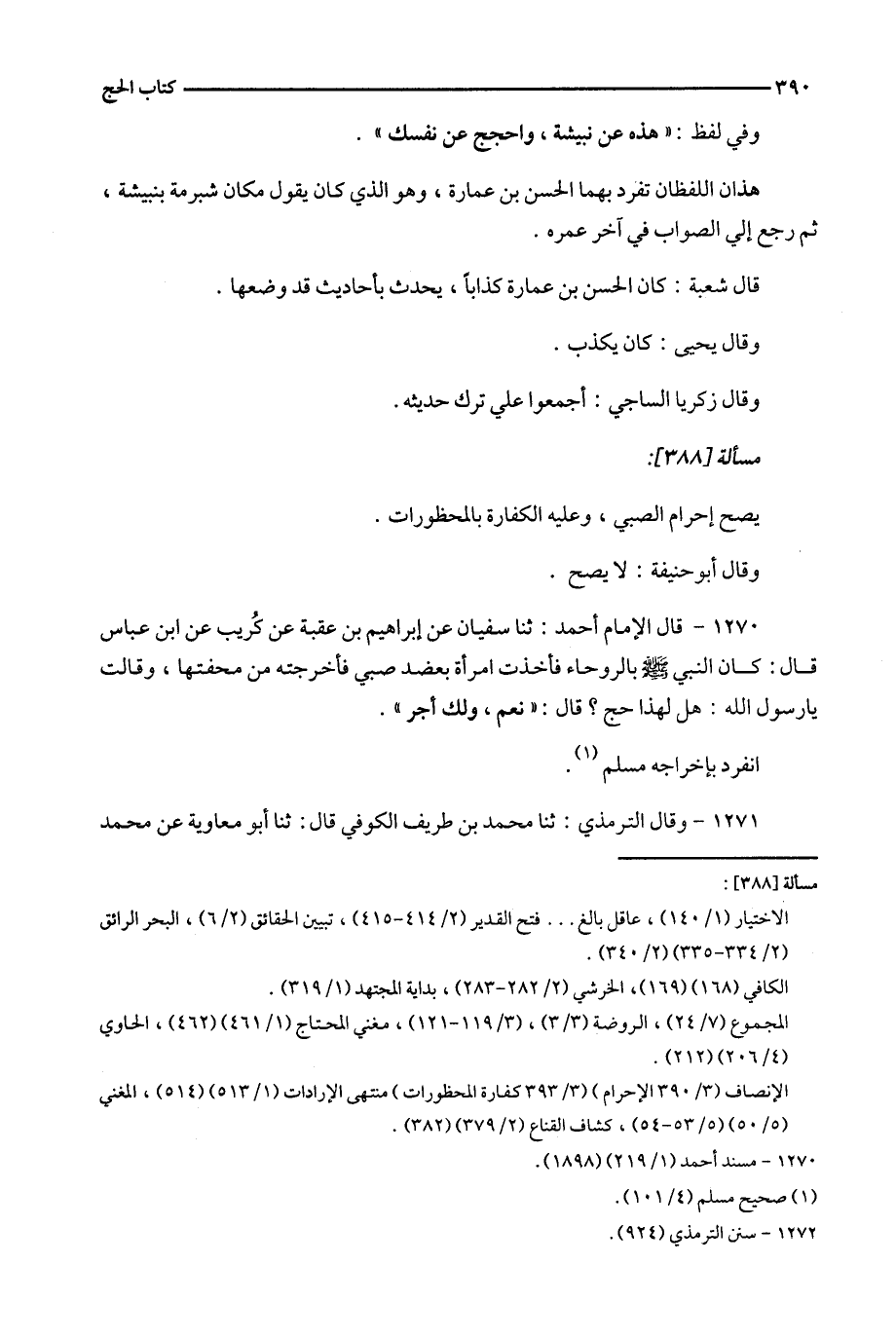 1270 - قال الإمام أحمد : ثنا سفيان عن إبراهيم بن عقبة عن كريب عن ابن عباس قال : كان النبي بالروحاء فأخذت امرأة بعضد صبي فأخرجته من محفتها ، وقالت يا رسول الله : هل لهذا حج ؟ قال : ' نعم ، ولك أجر ' .