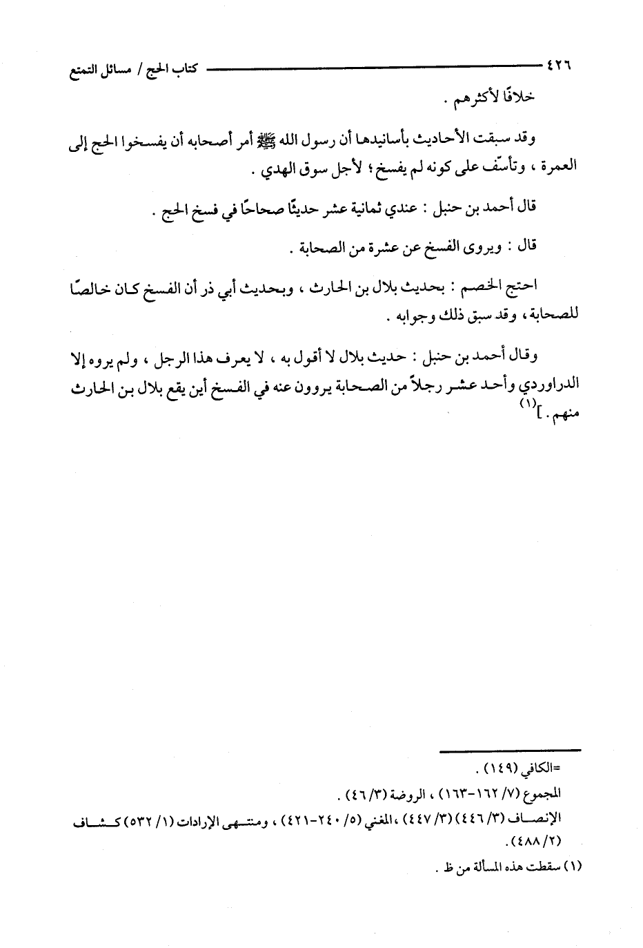 قال أحمد بن حنبل : عندي ثمانية عشر حديثا صحاحا في فسخ الحج .